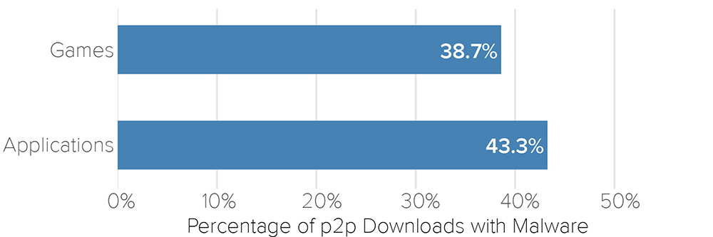 Today we published our latest Bitsight Insights report titled “Peer-To-Peer Peril: How Peer-To-Peer File Sharing Impacts Vendor Risk and Security Benchmarking.” For this report, Bitsight researchers analyzed peer-to-peer file sharing activity on over 30,000 companies to understand the risks of this behavior. Shockingly, when looking at specific files, Bitsight found that a whopping 43% of applications and 39% of games contained some form of malicious software. This underlines the key finding of this report: file sharing on corporate networks is a major malware threat for organizations.