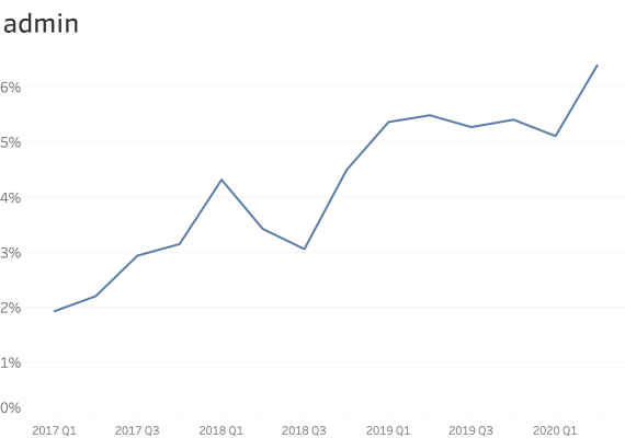 When seen at common subdomains we see only a small increase in the ratio of usage.