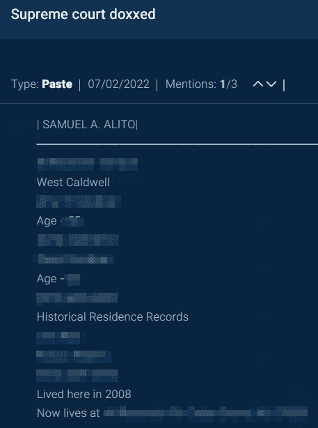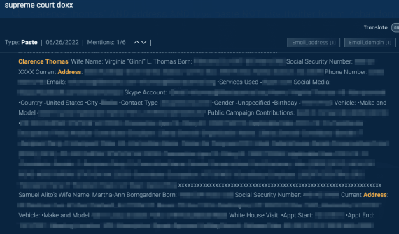 In addition, Cybersixgill, a Bitsight company, has identified several other doxes of these same five justices following the court’s decision. Generally, these posts included information such as addresses, family members, email addresses, and phone numbers. For example: