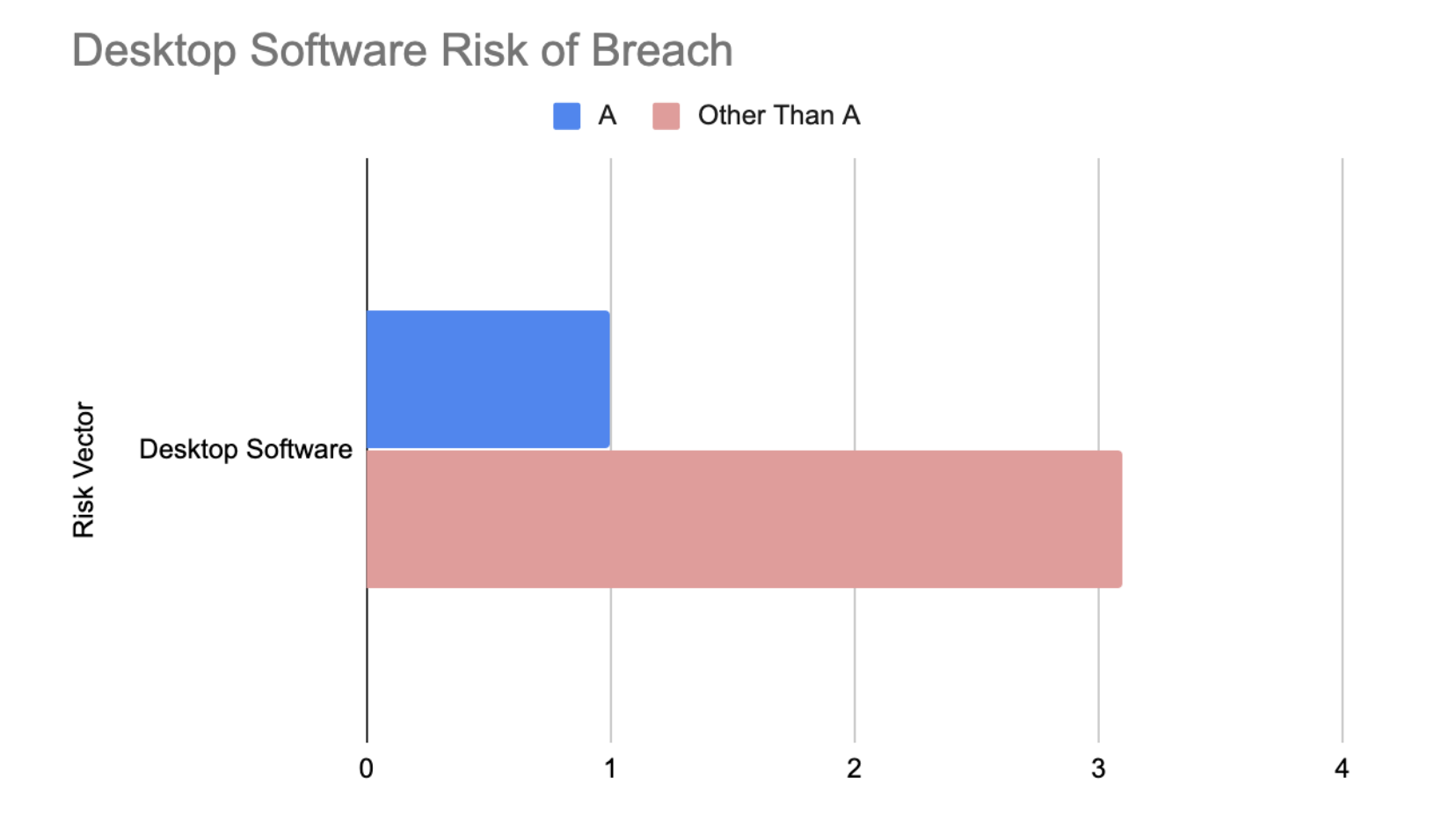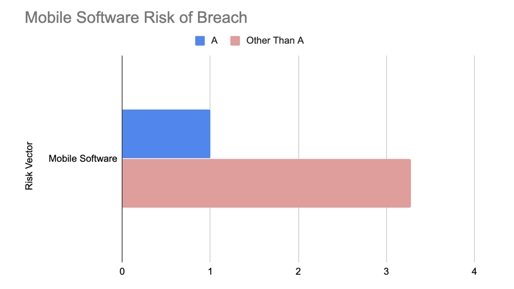 Unlike desktops, most users don’t really know when their mobile phones update or what version of the operating system they are on. However, since mobile phones are often BYOD, yet connect to the office network via WiFi, or have apps or cloud storage with access to potentially sensitive information, it’s imperative that mobile software be fully up to date. Interestingly, Mobile Software is one of the most dangerous of these risk vectors, since having any grade below an A correlated to a 3.28x increased likelihood of breach. Given the ubiquity of mobile devices, it is imperative that security teams develop sound policies and procedures to ensure the software on all corporate associated mobile devices is up to date.