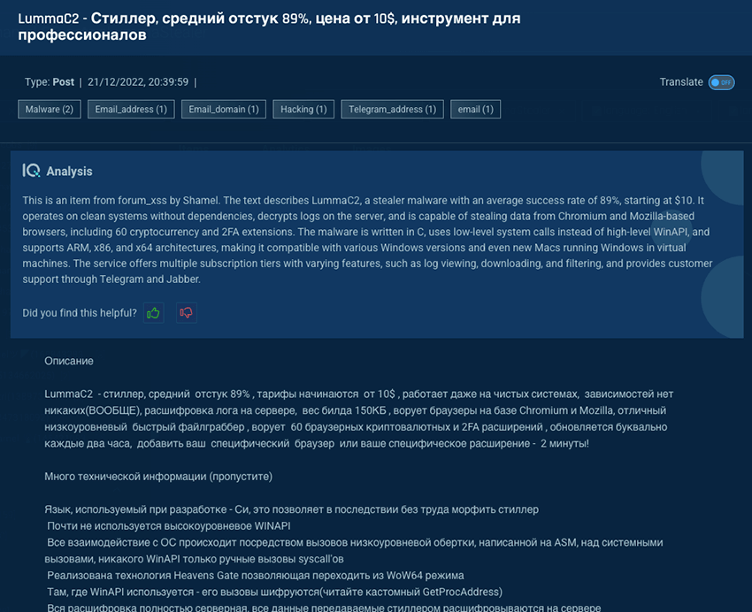 LummaC2 is the successor of LummaC, an infostealer operating under the Malware as a Service (MaaS) model. Advertised on various underground forums since late 2022, the malware has undergone significant development with frequent updates and new versions since then. The actor, known by aliases including Shamel, LummaStealer, and LummaC2, promotes the malware's features and updates through underground forums and a Telegram channel.