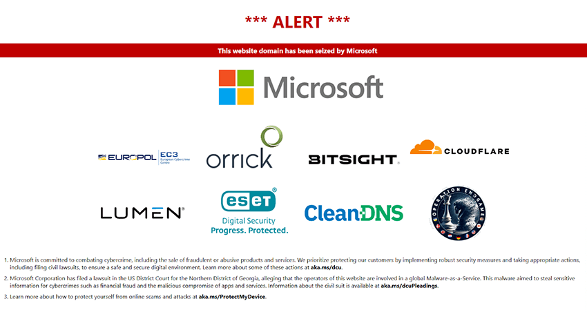 - Bitsight TRACE participated in a coordinated action led by Microsoft DCU with private and public partners, to disrupt the malware operation, its command and control infrastructure and the channels where the stolen data is sold.