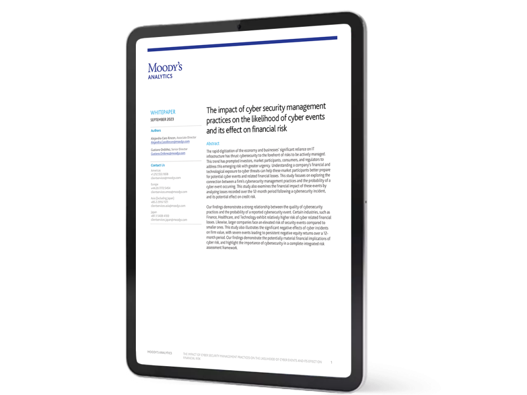 “We [Moody’s Analytics] found that cybersecurity practices, as proxied by the Bitsight cybersecurity rating, are strongly correlated with the likelihood of a cyber incident.”