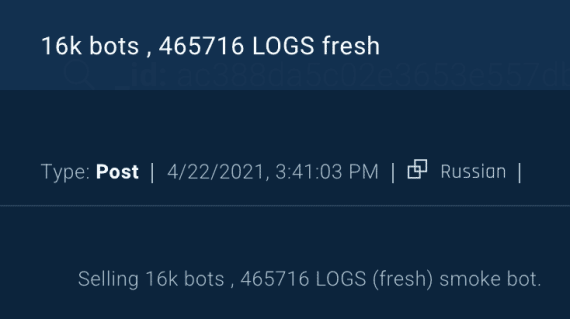 If we take a closer look at the post shown above, the remote access broker that we profiled earlier noted that the logs for sale were procured by the MaaS called Smoke Bot.