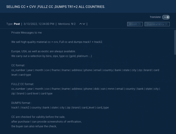 Next, in the post below, the actor responsible for notorious ransomware, responded to a post selling credit card information and dumping data. The actor comments, “How can I reach you to do business,” indicating that they are interested in purchasing the credit card data. Considering that this actor can almost certainly compromise credit card data on their own, it is very telling that they choose to purchase instead. This is a simple business decision for this actor: it is more efficient for them to pay than to devote the necessary time and effort to hacking.
