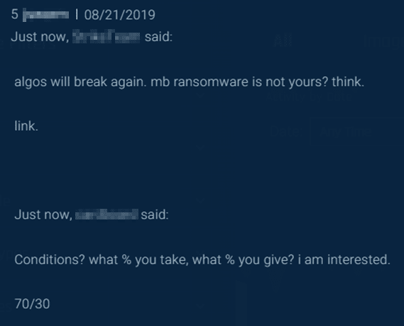 In this subsequent post on the thread, the actor explains that they will collect 70% of ransom proceeds, and affiliates will receive 30%.
