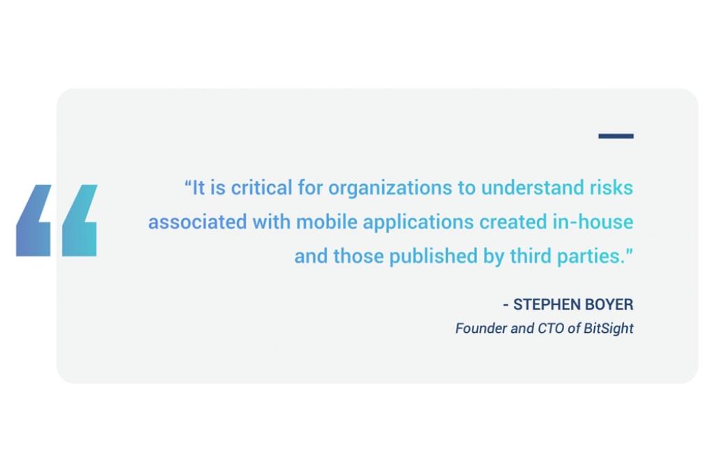 “Mobile applications already drive much of today’s digital activity and that will only increase in the future. 5G, increased work-from-home, and the ever-increasing availability of mobile devices have all but assured that cyber criminals will look for avenues into mobile applications to conduct attacks.” - Stephen Boyer, Founder and CTO of Bitsight