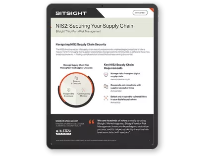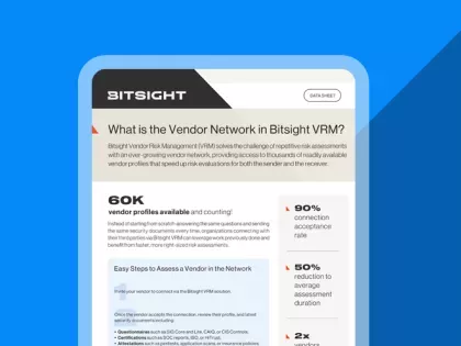 Cyber risk intelligence resources Explore expert guides, reports, and product information to help you measure, manage, and communicate cyber risk with confidence. Filter by: TypeAnalyst ReportsGuidesData SheetsResearchVideosWebinars TopicsArtificial IntelligenceBitsightBitsight ResearchCompliance & RegulationsCybersecurityCyber InsuranceCyber Threat IntelligenceExposure ManagementIndustriesReporting & AnalyticsRisk ManagementSecurity RatingsThird Party Risk ManagementVendor Risk ManagementVulnerabilities & Incidents Data Sheets Top Five AI Governance Questions To Ask in Your Vendor Risk Assessment View now Data Sheets A Strategic Approach to Evolve Your TPRM Program with Integrated CTI View now Data Sheets Getting started with Bitsight Trust Management Hub View now Data Sheets Bitsight Threat Intelligence Campaigns View now Data Sheets Bitsight TI Brand Intelligence View now Data Sheets Cyber Threat Intelligence Professional Services View now Data Sheets Data sheet: Cyber Threat Intelligence Data Collection View now Data Sheets Data sheet: Bitsight Pulse View now Data Sheets Bitsight Cyber Threat Intelligence View now Data Sheets Identity Intelligence View now Data Sheets Your End-of-Year Cybersecurity Checklist View now Data Sheets Japan’s Guidelines on Cybersecurity in the Financial Sector View now Pagination Current page 1 Page 2 Page 3 Page 4 Page 5 Next page